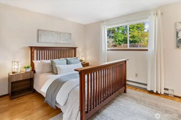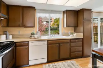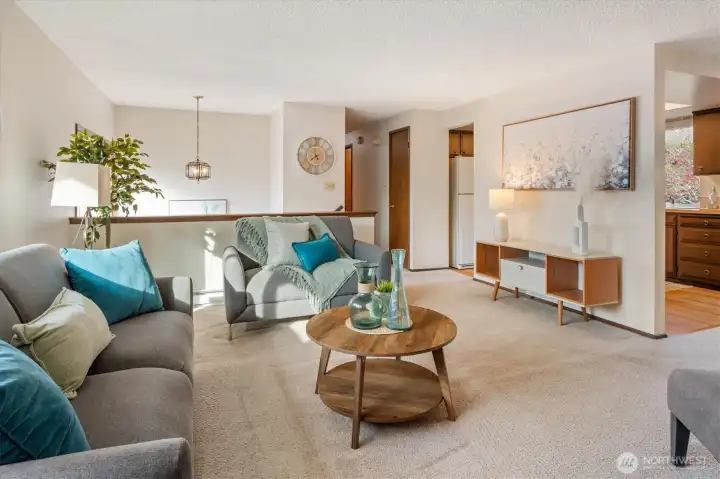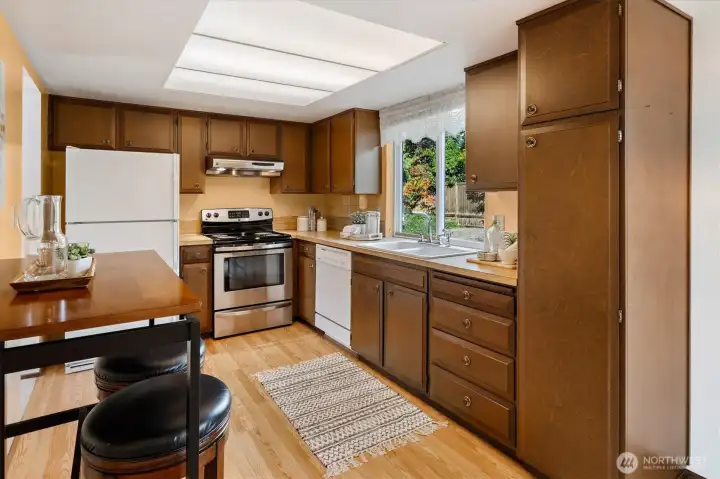 This Kirkland home is ready for your ideas! West facing living room has lots of light, hardwoods under carpets & big picture windows. The dining room also has hardwoods under carpets & a lovely deck overlooking the backyard, perfect for entertaining! Lovely kitchen w/eating space & lots of cabinets. 3 spacious bedrooms w/hardwoods all on same floor, full bath incl primary w/additional full bath. Lower level features family room w/fireplace/woodstove, laundry room & lots of possibilities! 2-car attached garage. Located in popular Kingsgate area & w/ community pool, tennis & pickleball courts, ballfield, play area & picnic area! Easy commute & minutes to downtown Kirkland! Excellent Lake Washington School District!