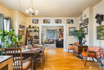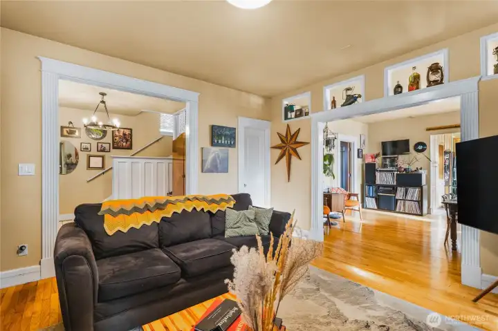 Timeless North End elegance w/ sweet Water & Mountain Views. A Grand Entry welcomes you into a Sunlit Home w/ Gleaming Hardwoods & Timeless Features. The Main-Floor flows Seamlessly w/ a Bright & Spacious Kitchen, Dining & Living areas. Primary Suite offers a Full Bath w/ Jetted Tub & Walk in Closet. Three Bedrooms, a Full Bath & a Deck w/ Amazing Views Upstairs. Spacious Basement for Storage & a Shop. Home Office or Rental Income Potential w/ ADU on a separate Power/Water/Gas Meter! Oversized, possibly Sub-Dividable Lot, Fully Fenced Yard, Front Porch, Back Patio, Spacious Detached 2-Car Garage, Storage Shed, Dog Run & Ample Parking. Minutes from all amenities: Grocery, Restaurants, Incredible Parks & Waterfront. What more can you ask for?