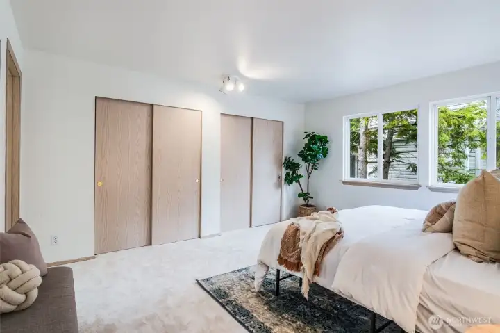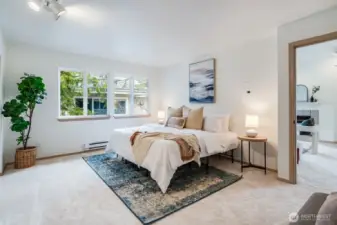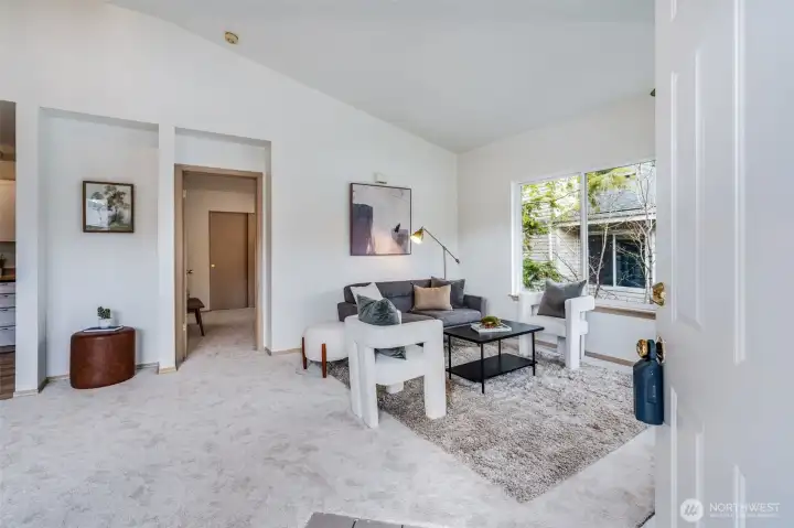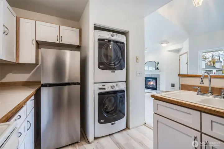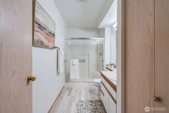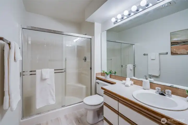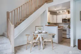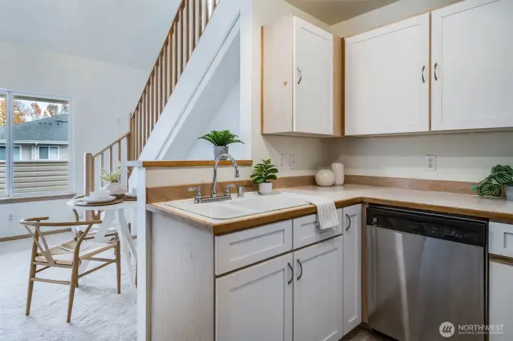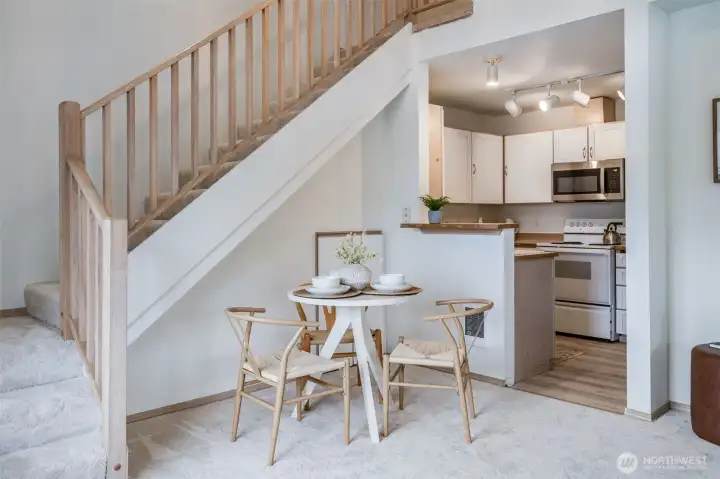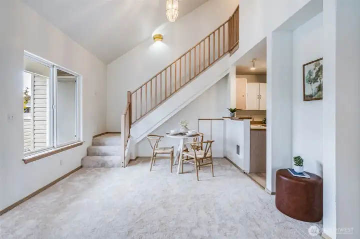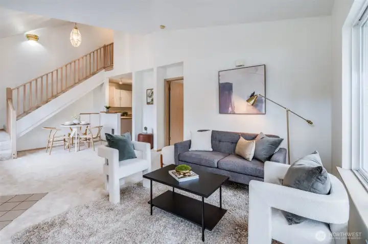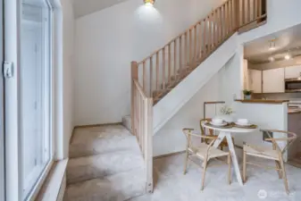 Light and bright condo in fantastic, central Lake Stevens location. One of only four units in the complex that comes w/ a one-car garage AND a covered parking space. Additional storage on the front patio. Greeted by vaulted ceilings, the condo features updated flooring and cabinet faces. Also included are two generous bedrooms: a primary with an en suite and two large closets. Upstairs is a private retreat with the second bedroom and full bath. Wonderful opportunity in a coveted town!