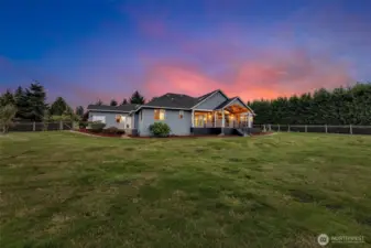Experience refined living in this 2819 sq. ft. custom ranch, set on 5 private acres on Salmon Creek with lush landscaping, an orchard, and sweeping views of deer and eagles. Vaulted windows, a covered Trex deck, and an open floor plan showcase a designer kitchen, custom fireplace, and California Closet–equipped primary suite. A temperature-controlled 576 sq. ft. shop offers endless possibilities, from hobbies to ADU conversion. Privacy, elegance, and functionality combine to make this a rare find.