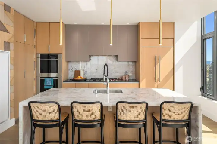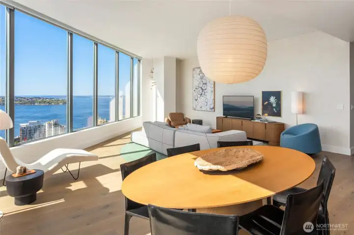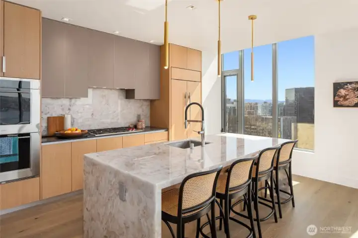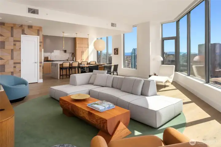 Spire’s Penthouse Collection is here! A stunning SW corner 3 bed combines incredible layout with wraparound views of Elliott Bay, Puget Sound, downtown, and the Olympics that make this home a standout. You will be amazed at the interiors that include Sub-Zero/Wolf appliances, kitchen island with waterfall counters, Jr Primary bed/bath, spa-like primary bath with free-standing tub w/Sound views, two parking and storage locker! Amenities include 24/7 concierge, top floor fitness center, pet run, 40th floor clubroom, dining, terraces, co-working space, theater, movement studio + more. Don't forget about the automated parking providing more luxury to your experience. Spire offers nothing but the best! Buyer must register broker on first visit.