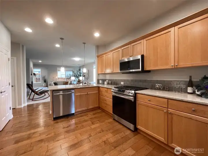 Welcome home to Jubilee, the PNW premier 55+ community. This meticulous rambler offers 3 bedrooms (3rd bed functioning perfectly as a flex/office w/closet), 1.75 baths, and 1,617 sq ft of inviting living space. Situated on a 8,000 sq ft lot w/room to roam + privacy. The open-concept design w/natural light, features beautiful floors & a cozy gas fireplace. The chef’s kitchen boasts granite counters, SS appliances, and generous counter space. The spacious primary suite includes a walk-in closet & en-suite w/step-in shower. A fully fenced, low-maintenance yard offers a peaceful setting. Resort-style amenities include a lodge/indoor saltwater pool/clubhouse/fitness center/golf/tennis, & walking trails to Puget Sound. HOA covers front yard care.