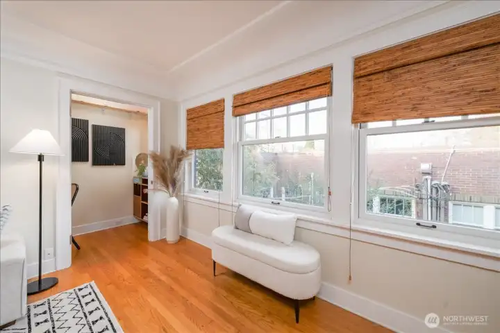 Top-floor corner condo at The Rowan in Capitol Hill! This bright, open unit features warm hardwood flooring and expansive windows that fill the space with natural light. Enjoy a thoughtfully designed layout with abundant built-ins and generous storage throughout. Expansive living room room flows seamlessly to the kitchen with more practical storage. In-unit laundry adds everyday convenience. Practical and efficient office nook. Secure, covered parking and additional on-site storage complete this rare find in one of Seattleās most vibrant neighborhoods. Old world charm meets modern convenience here at the Rowan.