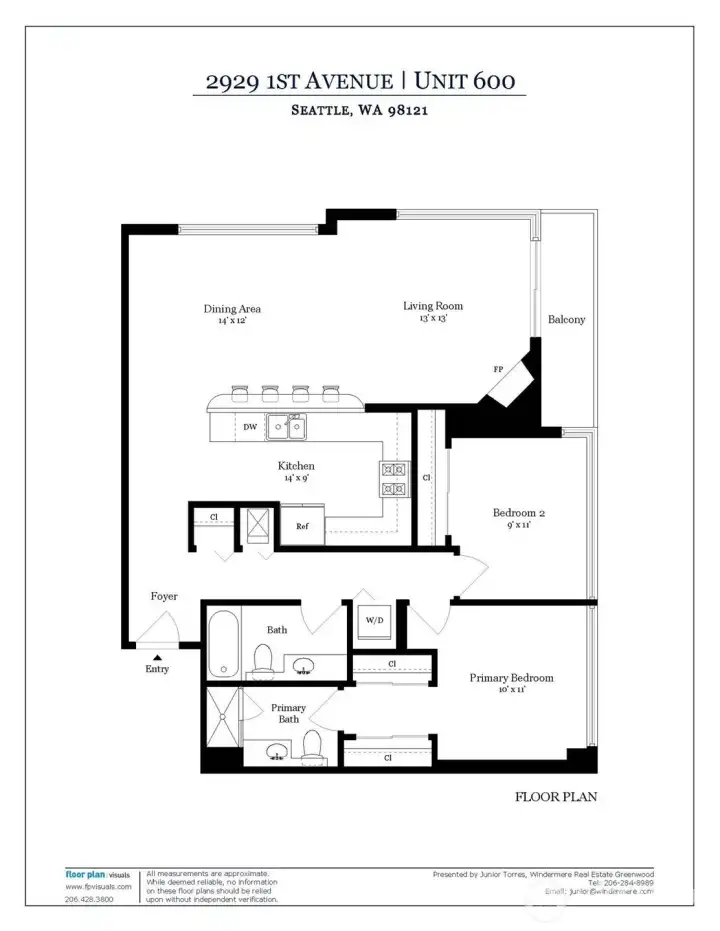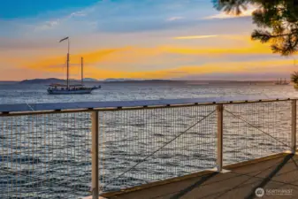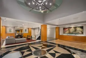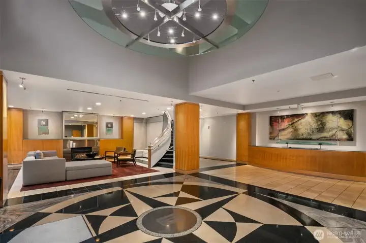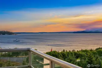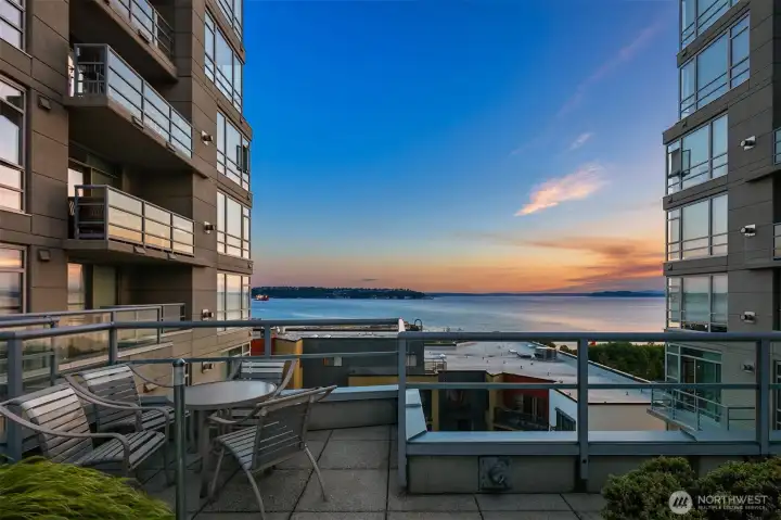 Commanding panorama of Elliott Bay + Olympics highlight this sophisticated 2BR Belltown corner condo with 2 secured parking spaces. Natural light cascades thru floor-to-ceiling windows which dramatically frame views of sunsets, ferries + Sculpture Park. Open floor plan offers optimal modern living with great entertainment potential. Bright LR features distinctive FP, chic hardwoods + access to deck. Proseries stainless appliances and slab granite counters help define modern kitchen. Stunning glass breakfast bar adds style & function. Expansive vistas also found in spacious bedrooms with owner’s BR including ensuite + California closet. Elevate your lifestyle in one of city’s hippest neighborhoods with dining, parks + nightlife just outside.