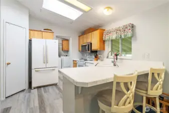 Enjoy Premier Senior Living! You’ll love the large deck which backs up to greenbelt — perfect for outdoor relaxation or entertaining. Recent updates: new windows and gutters, exterior paint & electrical panel. Kitchen has new LVP flooring, walk-in pantry, breakfast bar and all appliances including washer & dryer. This home features an efficient Heat Pump and a desirable split floor plan with a spacious primary suite, walk-in closet, and bath with a walk-in shower. The other two bedrooms and full bath are conveniently located at the opposite end. Over-size shed for all your storage needs. Silverdale Estates is a 55+ community with a clubhouse, indoor swimming pool, hot tub, sauna & more. Close to shopping, restaurants & medical facilities.