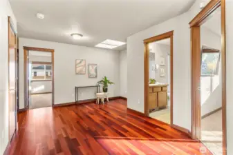 Elegantly upgraded 4 bed Rob Rice home in coveted Evergreen Heights. This single-owner, beautifully maintained residence features a fully remodeled spa-like primary suite with standalone soaking tub, tiled walk-in shower, quartz counters, and custom closet. Updated kitchen offers quartz counters, tile backsplash, pendant lighting, stainless range hood and single basin sink. Extended hardwood floors flow through main level, loft, and primary suite. Spacious skylit loft & large secondary bedrooms offer versatility. Corner lot with low-maintenance turf yard, fully fenced, pergola, plus heat pump A/C! Prime location near JBLM, parks, shopping and walking distance to elementary school. This one is in even better in person-don't miss it!