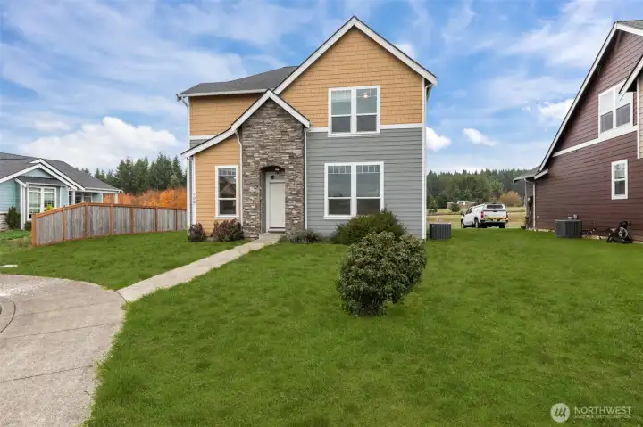 Sun-drenched, airy, and bright! This 4-bed 2.5-bath home features a crowd-pleasing floor plan! Every room is spacious and light-filled, with big windows. You’ll love the primary suite with soaking tub, shower, dual sinks & walk-in closet. Quartz counters, stainless steel appliances, with a center island, and pantry make this home ideal for meal prep, holidays, and entertaining. Don't miss the laundry room with soaking sink and tons of storage. Convenient alley access and an oversized 2-car garage. Plus a playground within walking distance and a great backyard patio to stay cool from the evening sun. Located just minutes from I-5, this home offers easy access to shopping, dining. Heat Pump/A/C.