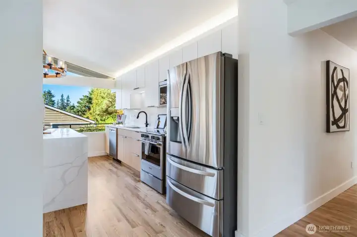Beautifully renovated Richmond Beach home offering modern comfort and style! This spacious 4 Bed, 3 Bath residence features two full kitchens-ideal for multigenerational living or rental potential. Main level offers open concept living/dining, updated kitchen with quartz counters and SS appliances, plus abundant natural light. Lower level includes a full second kitchen, living area, and private entry. Enjoy a large fenced backyard, mature landscaping, and recent updates including new flooring, paint, and lighting. Conveniently located near top-rated Shoreline Schools, Richmond Beach Saltwater Park, shops, and future light rail.