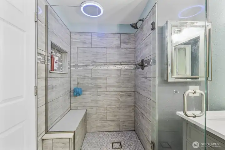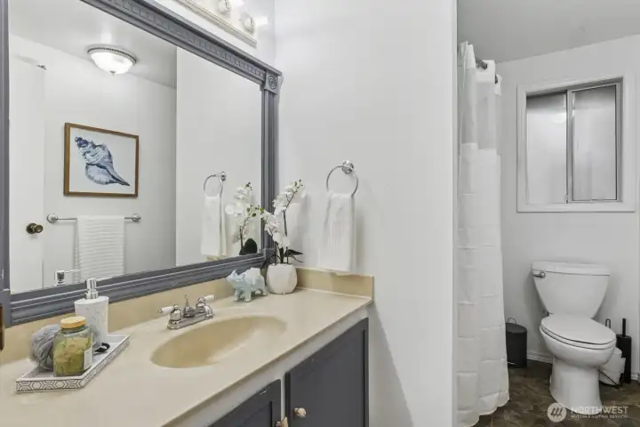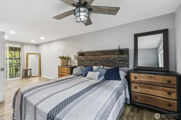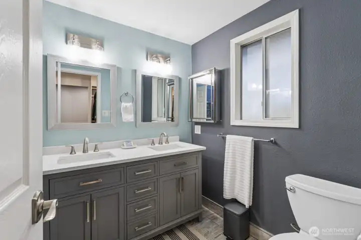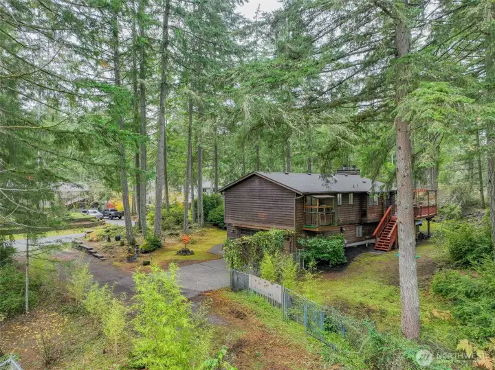Beautifully updated Nisqually Crest home on a fully fenced 0.652-acre lot, minutes to shopping, park and trails, and about 15 minutes to JBLM. Features include engineered wood floors, an open-concept renovated kitchen, a spacious living room with fireplace, and a dining area that opens to a large deck overlooking the backyard. The expanded primary suite now includes dual walk-in closets and a spa-style bath with double vanity and a custom tiled shower with a bench and Bluetooth fan/speaker. Downstairs offers a large bedroom/bonus room with a second fireplace and half bath. Outside, enjoy a newly cleared open area with a walk-in fire pit, and an above-ground perimeter irrigation/sprinklers.