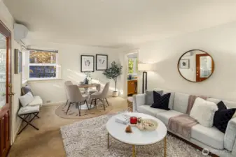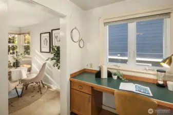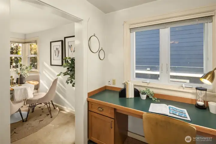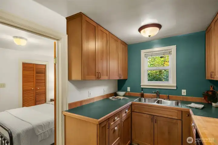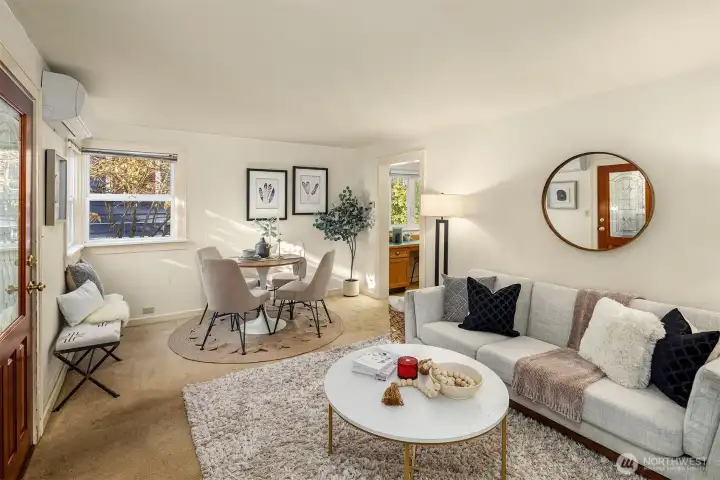 Resting on a generous, beautifully planted lot is a charming 1-bedroom home waiting for your touches. A covered front porch leads into a comfortable living room/dining room combo. The galley style kitchen includes a built in desk for convenience. One bedroom and bath sit just off the kitchen, offering easy access. Laundry room on the main level adds practicality. The half finished basement features a 3/4 bath and a finished bonus room/office A one car detached garage, charming patio and private back yardr with mature Asian pear tree finish the back yard. close to Northgate’s Light Rail Station, commercial and bus routes makes this spot even more appealing.