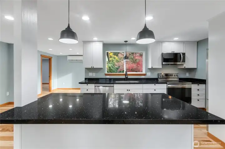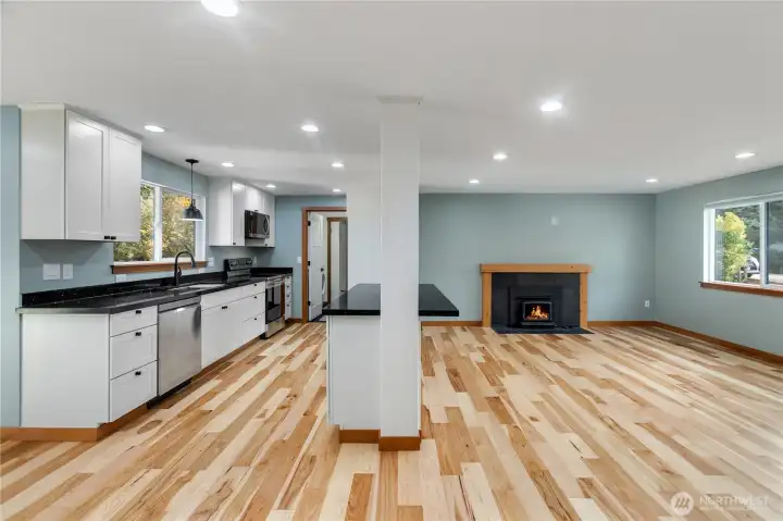 Beautifully rebuilt, this single-story home near Kitsap Lake offers modern style and stunning updates throughout. Everything is new—plumbing, electrical, roof, siding, cabinets, countertops and mini-split heating & AC in each room. Warm hardwood floors flow through every space, paired with designer tile in the bathrooms. Remodeled down to the studs with high-end finishes inside and out this home is better than new. Enjoy inviting curb appeal and a private backyard & patio with room to add an ADU or Shop in the back. This location is prime, with HWY 3 only minutes away along with quick access to the Bremerton/Seattle Ferry. A short walk will get you to Kitsap Lake Elementary and the local Park. Make this gem your home for the Holidays.
