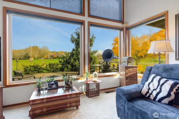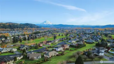 Beautifully maintained rambler in the Augusta sub-division at the High Cedars 27-hole Golf Course. Boasts stunning Mt. Rainier views & a spacious deck overlooking the Executive Nine’s 3rd tee. Features 3 bedrooms (one currently a den), 2 baths, plus an extra shower in mud/laundry room, a large island kitchen, cathedral ceilings, lots of natural light in living areas, plus a generous primary suite, with 5-piece bath & easy deck access. Brags newer roof & HVAC system with central air, inground sprinkler system, dual hot water tanks. Easy golf cart/walk access to clubhouse & chef run restaurant, close to Sumner or Orting city services, schools, more. *Golf course homes do not come up very often, it won't disappoint, come "stay where you play!"