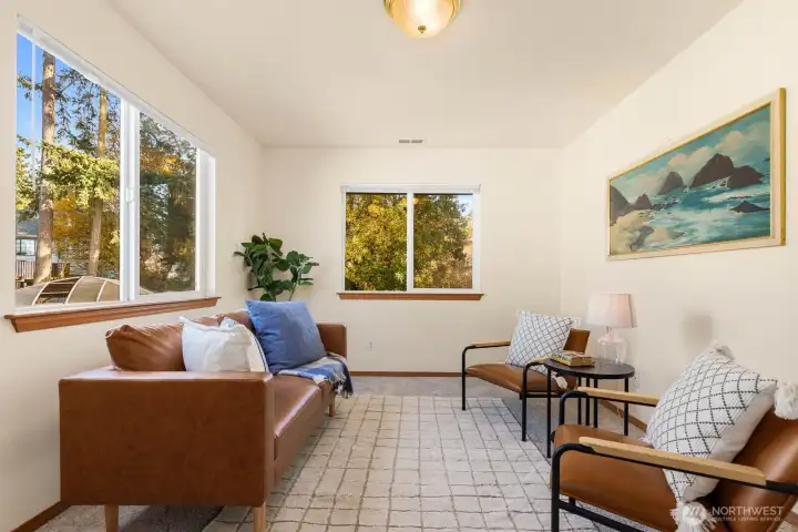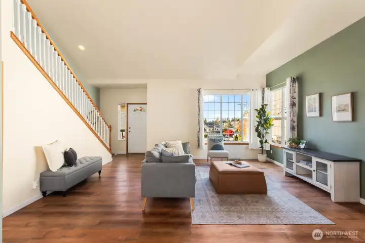 This 2-story home has it all! Amazing neighborhood! Highlights: 1,736 sqft, durable LVP flooring, a gorgeous Great Room w/ vaulted ceilings filled w/ natural light, a cozy gas fireplace, and a smooth transition to the ample dining space. The thoughtfully designed kitchen offers generous counter & storage space (including a pantry), w/ easy access to the fenced, park-like backyard—perfect for year-round fun! Enjoy a private primary ensuite w/ a walk-in closet, two additional bedrooms on the main, and a spacious flex/media room upstairs. Fresh interior, exterior paint, new carpet throughout, cement plank siding, natural gas heat, & a tall-clearance garage add to the appeal. Perfectly positioned near schools, parks, beaches, and NAS Whidbey!