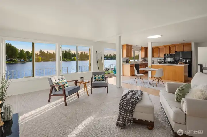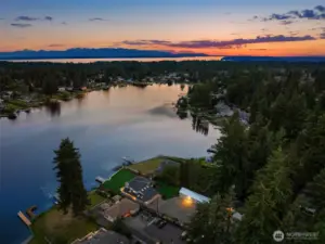 Investor/Developer Alert! Potential to reconfigure existing shop into duplex or ADU—buyer to verify. 1st time on market in nearly 50 years! Rare 1-acre city oasis with 97' of waterfront, southwest-facing lakefront on peaceful, non-motorized Serene Lake. Private dock, expansive deck/patio, storage/boat house, and potential to subdivide into 2 waterfront lots. 4,697 sqft home with 5 beds, 4 baths— for multi-family or single-family use. Mother in Law suite in basement w/private entrance and laundry, previously rented consistently. 1” water meter, 400-amp service, A/C, RV hookups, 1,400 sqft shop, 624 sqft barn. Quick access to I-5 & I-405 and walking distance to shopping and transit.