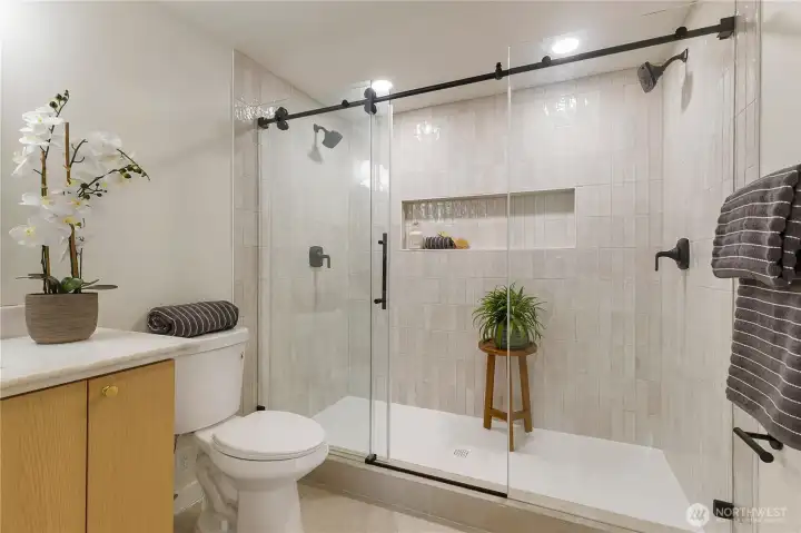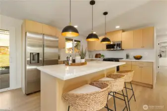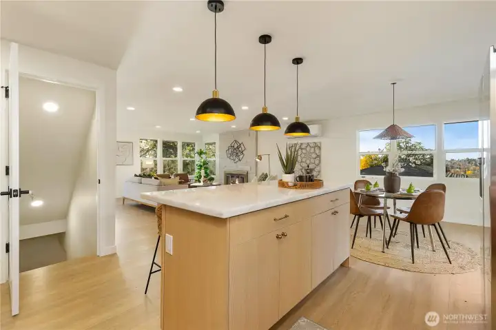 Perched above the street, this updated home combines bright airy spaces w modern livability. Open layout w fresh finishes & timeless design details. Brand-new kitchen features sleek cabs, natural stone counters, SS appls & ample storage. Dining & lvg rms anchored by cozy FP flow to deck & spacious backyard. Expansive primary is a true retreat w/walk-in closet, custom built-ins & luxe spa-like ensuite. Add’l BR & BA complete the main. Lower offers flex for rental or multi-gen lvg w/private entry, kitchenette, BR & full BA—all w/new finishes & fixtures. Fenced yard & 1-car garage complete the pkg. Convenient to restaurants, shops, schools & light rail—style & versatility in one of Seattle’s most desirable neighborhoods!