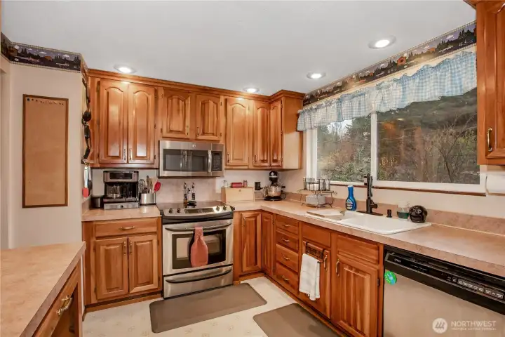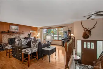 Immaculate and inviting! This beautifully maintained split-entry home offers plenty of space with new paint and a new roof! Designed to accommodate multi-generational living or those who love to entertain. The spacious upstairs features a cozy fireplace and open flow to a deck—perfect for gatherings or relaxing evenings outdoors. The kitchen, thoughtfully remodeled, provides plenty of storage and workspace for the home chef. Hardwood floors add warmth and character throughout the main level. Downstairs, you’ll find a generous family room, a large laundry area with additional storage, & a versatile 5th bedroom with a built-in sewing center that can easily be converted for other uses. Backyard is level-great for a pool, fire-pit, or garden!