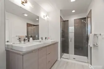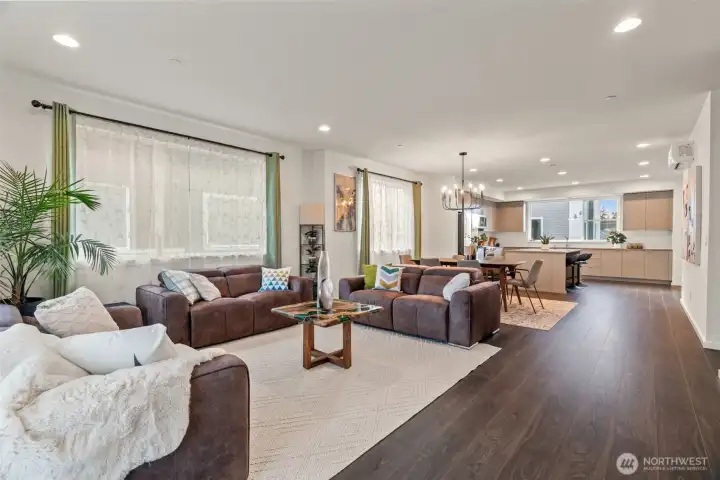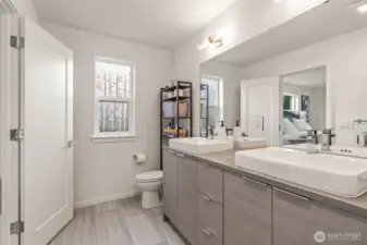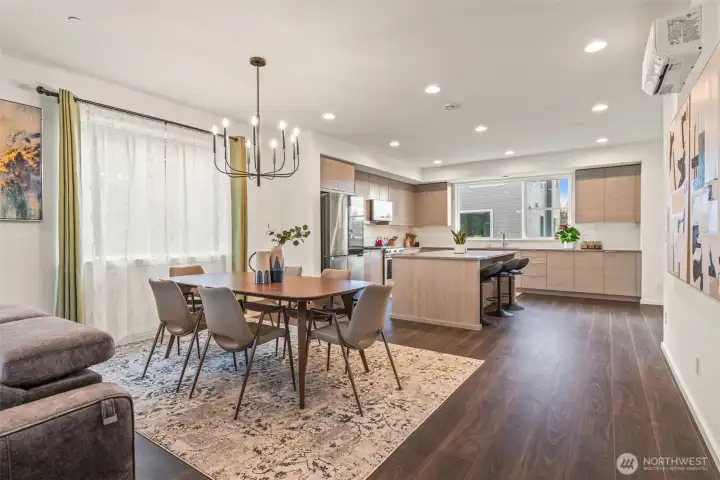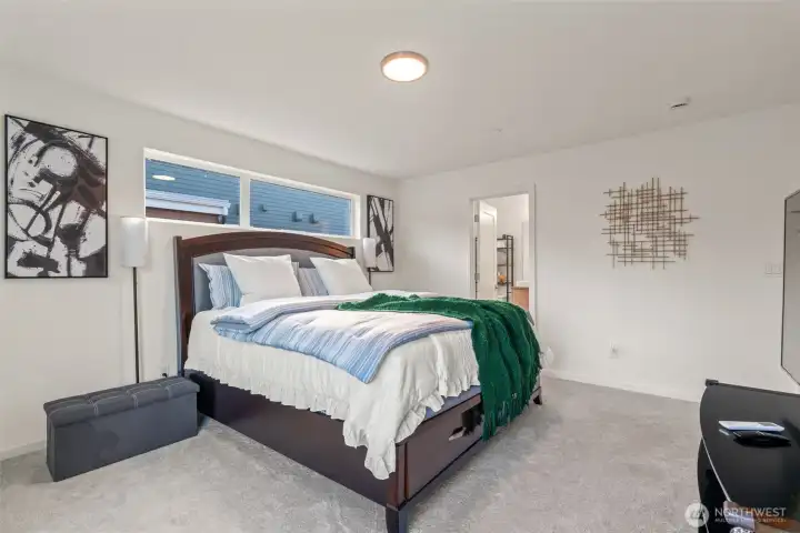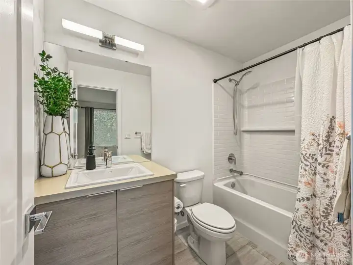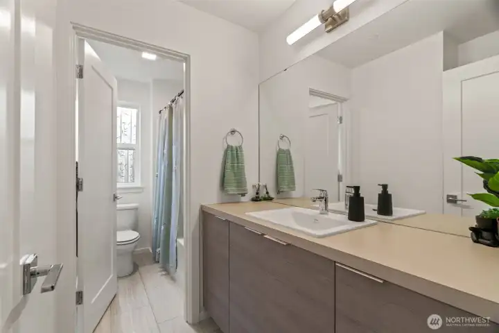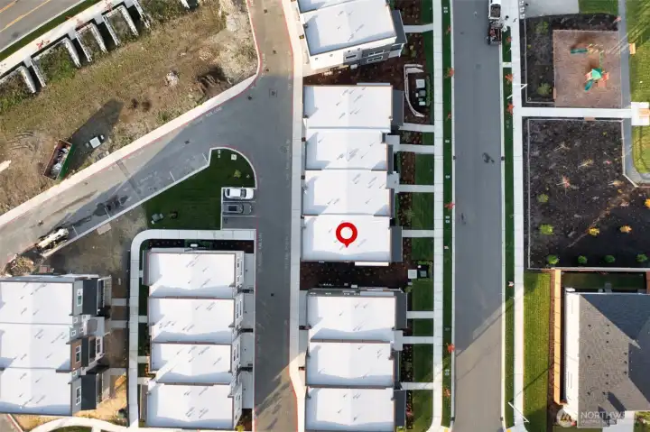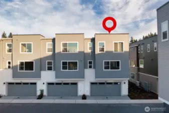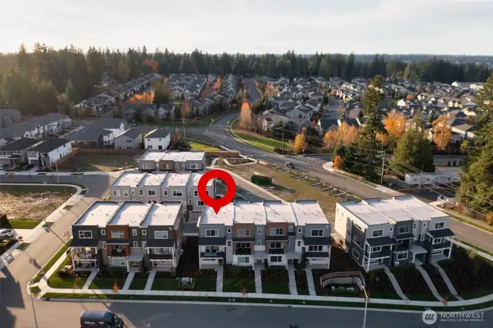 Discover modern luxury in this brand-new MainVue resale at Elmbrook — an east-facing, park-front Spruce floorplan showcasing style and comfort across three levels. This desirable end unit offers an inviting extended covered porch, foyer, and a guest suite on the entry level. The main floor features a gourmet kitchen with Quartz countertops, European frameless cabinetry, KitchenAid appliances, walk-in pantry, and a convenient study nook. Enjoy year-round comfort with air conditioning and relax on the covered deck overlooking the park. Upstairs, the primary suite boasts a spa-inspired bath and walk-in closet. Perfectly located across from Fernwood Elementary and near North Creek High—a must-see modern gem!