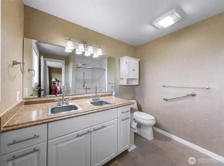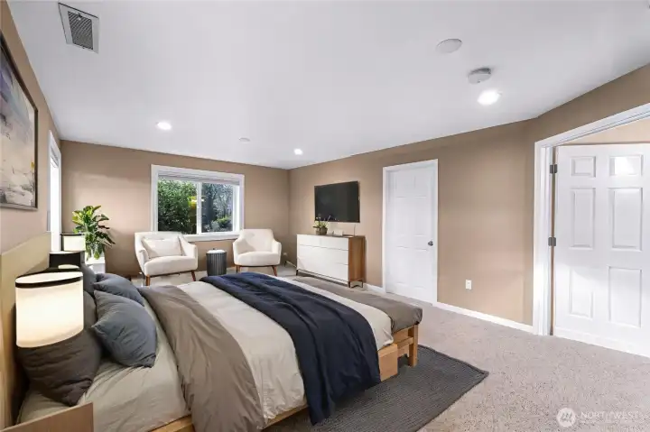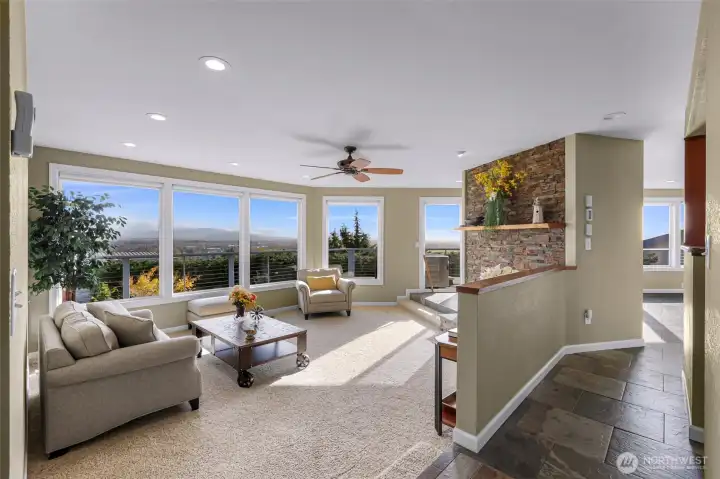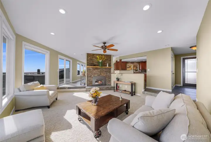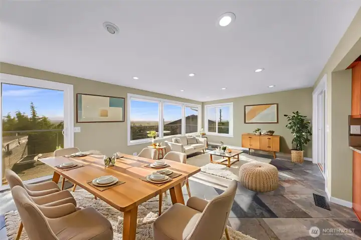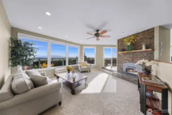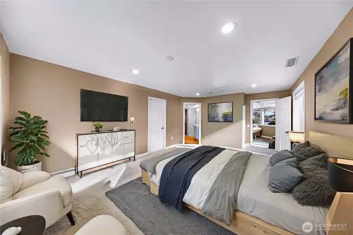 Experience breathtaking Mount Baker, Bellingham Bay, and sparkling city views from this stunning home. Enjoy main-level living in a bright open floor plan with a cozy fireplace, radiant heated floors, and updated kitchen with granite counters and SS appliances. The primary suite offers stunning views, a huge walk-in closet and updated bath. Step onto the large deck or soak in the hot tub while taking in panoramic sunsets and city lights. The lower level features a full ADU with 2 beds, 2 baths, full kitchen, laundry, and a separate driveway - perfect for guests, multi-generational living, or rental income. New roof, fresh paint, oversized garage, and RV parking. This move-in-ready home offers comfort, flexibility and investment potential.