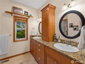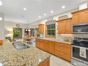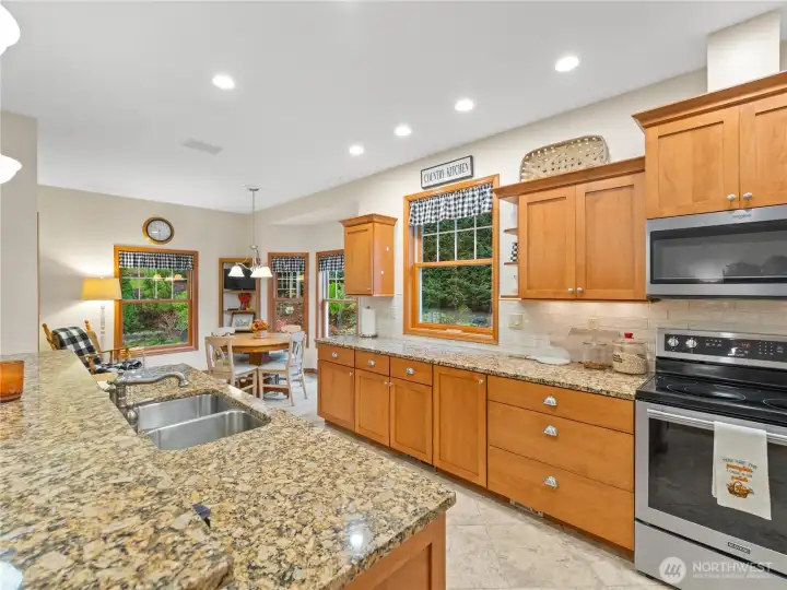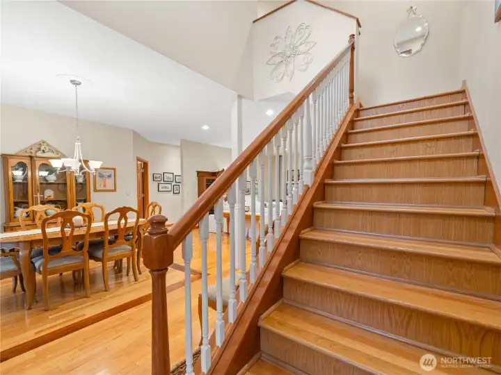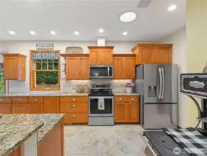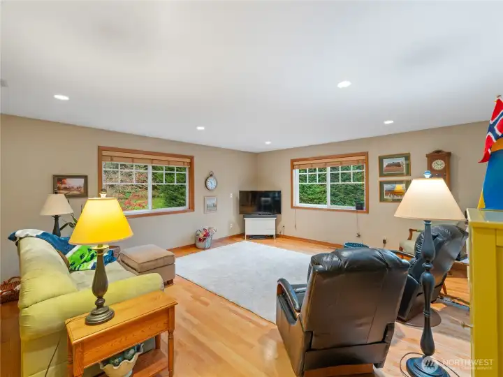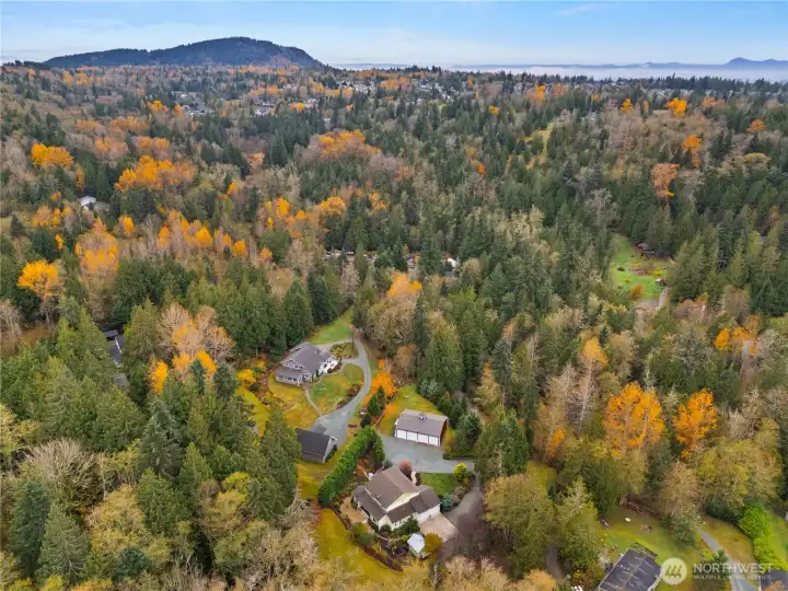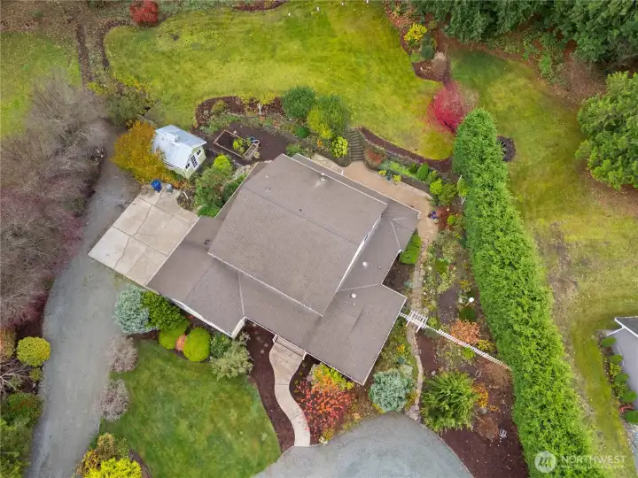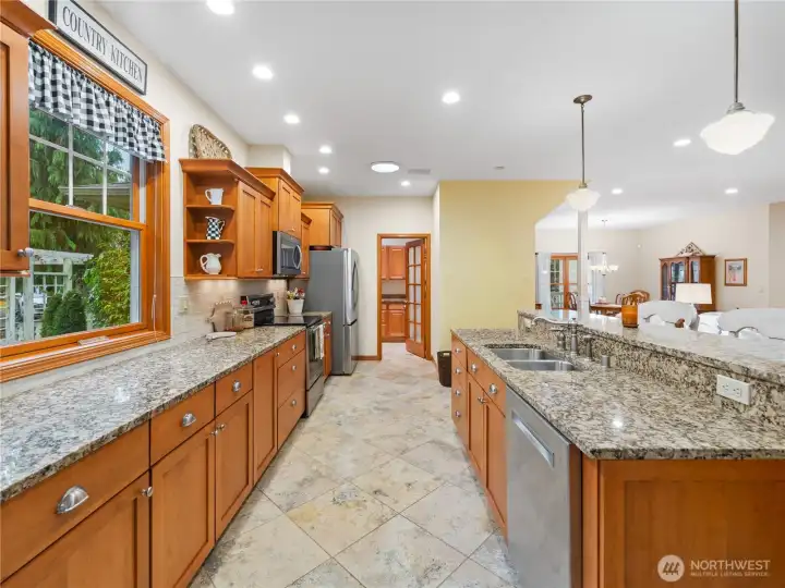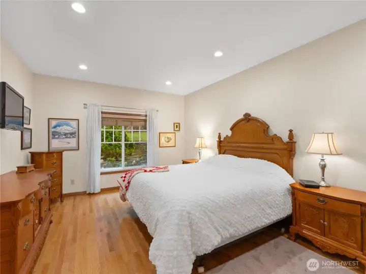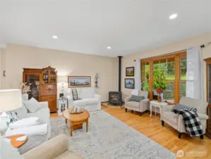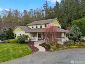 Privacy at it's best with this quality well-cared for beautiful home on just shy of 3 acres. Home has 3 bedrooms, 2 1/4 baths & 2680 sqft. Primary BR on the main floor, nice open Great room, free standing pellet stove, real hardwood floors throughout (no carpeting), huge laundry room w/ utility sink & plenty of storage, some rooms w/ beautiful Travertine floors, kitchen w/ soft close cupboards, Butler's pantry, eating bar, eating area in kitchen, sliders to private backyard. Upstairs is 2 spacious BR's (1 could be a quilter's paradise!), full bath & a spacious fam/ rec room. Detached 4 bay 36'x48' insulated shop, garden shed, fruit trees, raised beds, beautiful landscaping! Rural, but so close to medical & schools. This one is a rare find!