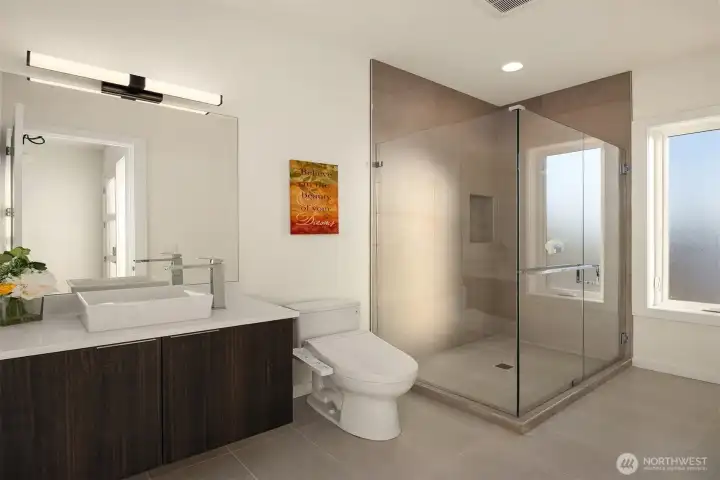 PRICE IMPROVEMENT HOME , LOT 1 , save up to $100,000 off select completed homes. New Luxury Homes By Datta Homes, A prime spot w/ easy commute to Bellevue and Seattle modern NW contemporary design, open layout with 10-ft ceilings and 8-ft doors on the main level, main-level office & bedroom w/ 3/4 bath. Entertain in style w/ a chef's dream kitchen & island off spacious great room, 142 sq ft outdoor room for indoor-outdoor experience. High-end features abound: Bosch SS appliances (fridge included), 3cm Quartz counters, European cabinetry, and luxury fixtures (Grohe, Kohler, DVX, Toto) throughout. primary suite comes with a 5-star bath, spacious walk-in closet. e -charging.