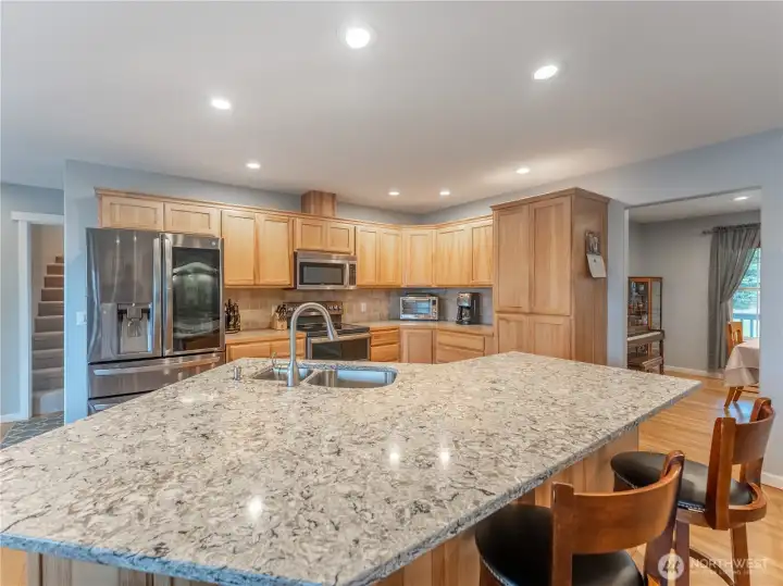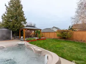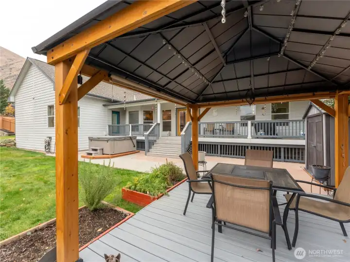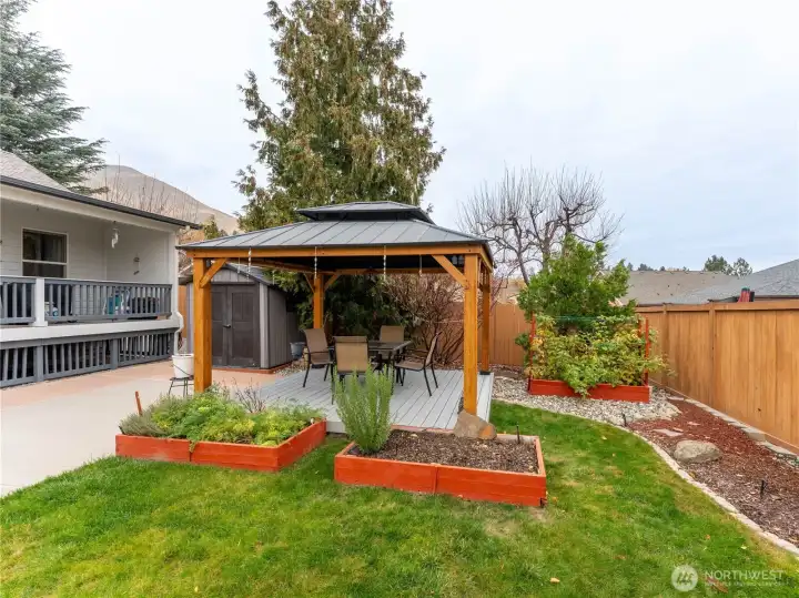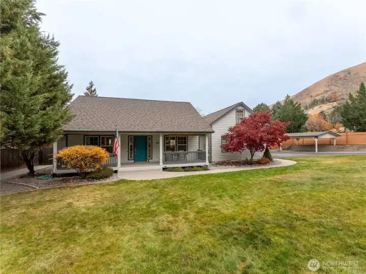 This charming single-level home offers both character and versatility, featuring a flexible bonus room. Nestled on a private corner lot with mature landscaping, the home welcomes you with a vaulted great room and expansive picture windows that showcase the beautiful backyard. The open-concept living area includes a cozy gas fireplace and a bright breakfast nook. The kitchen boasts a stunning granite island, warm wood cabinetry, and newer stainless steel appliances. The primary suite offers a tiled walk-in shower and generous storage. Enjoy spacious covered decks, a gazebo, and a relaxing hot tub—perfect for outdoor entertaining. The fenced backyard is framed by scenic mountain views. Extra parking and a newly built carport are a bonus!