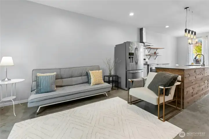 Like-New. Experience modern industrial living in the heart of vibrant Georgetown. This stunning townhome blends sustainability w/ style, featuring concrete floors, reclaimed wood accents, all new interior paint & LVP flooring/stairs at other levels. Enjoy flexible living w/ 2 bedrooms plus an office room, for work or guests. The primary suite opens to a spacious covered deck, while the fenced yard/patio offers space for entertaining. You’ll find two beautifully appointed ¾ baths w/ heated floors upstairs & a powder room at main level. Good parking w/ dedicated space in the alley. Located on the bus line & just steps from Georgetown’s eclectic restaurants, breweries & shops. Easy access to I-5, Hwy 99 & DT Seattle makes commuting a breeze.