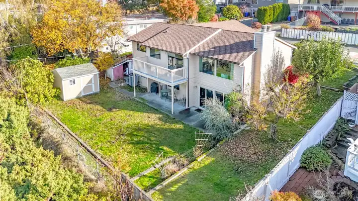 Immaculate 4 bed, 2.75 bath home in a highly desired neighborhood. Enjoy sweeping Puget Sound views from the main level (living, dining, kitchen, primary suite). Home is mechanically sound with a great roof and newer heat pump. The full daylight basement is designed for flexibility, offering a large family room, 3/4 bath, 1 bedroom, utility room, and an expansive bonus area—ideal for additional living area or multi-generational use. The oversized, well-manicured lot features designer slab with room for an RV. A true gardener's paradise: established fruit trees (apple, plum, fig), grape vines, and garden space. Includes an oversized 2-car garage and quiet alley access. Experience the perfect blend of views, flexibility, and prime location!