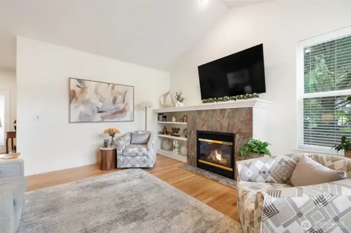 Welcome to Dunraven at McCormick Woods! This beautifully updated rambler sits on a desirable corner lot in the gated Dunraven community. Offering 2 bedrooms plus an office/den with lovely french doors, this home features easy single-level living with timeless style. Enjoy newly installed hardwood floors throughout, a gas fireplace, and vaulted ceilings in the living room that create a spacious, inviting feel. The cook’s kitchen shines with new countertops, quality cabinetry, and an open layout perfect for entertaining. Experience the best of McCormick Woods living—golf, trails, and a vibrant community atmosphere with new retail shopping and eateries coming soon to McCormick Village!