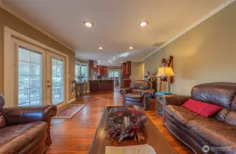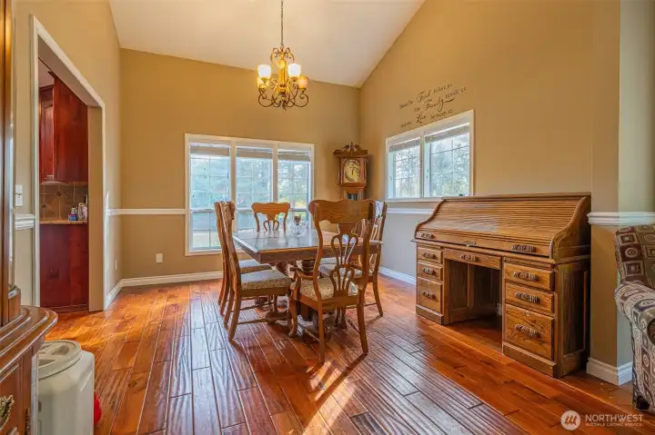 Experience country living at its finest in this beautiful pre-inspected 3-bed, 2.5-bath home on 2 serene acres with a detached 3-car garage and shop! Inside, hand-scraped hardwood floors, vaulted ceilings, and crown molding highlight the home’s craftsmanship. The gourmet kitchen features granite counters, custom cabinets, & stainless-steel appliances. Spacious family room with French doors leading to a covered patio and lush yard. High-efficiency electric furnace/heat pump, newer hot water heater, water softener system, and a 3-year-old roof. Enjoy stunning mountain views from the master bedroom and the peaceful charm of a friendly community. RV parking, fruit trees, and a partially fenced pasture, there’s space for all your hobbies & toys!