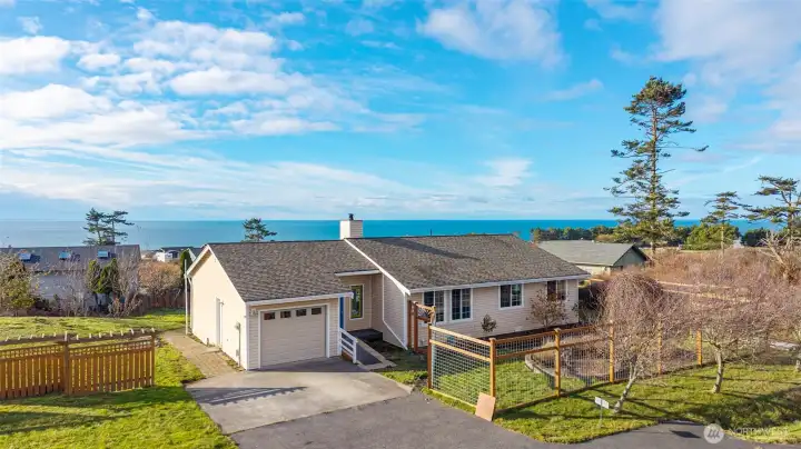 Enjoy sweeping views of the Strait of Juan de Fuca and Olympic Mountains from this beautiful one story home in sought after Sierra. The home sits on a large double lot, and includes 2 view protection lots. The large back deck invites you out to enjoy the views even more, while the fully fenced side yard offers gardening opportunities. The sun filled kitchen and great room are perfect for entertaining, and wait until you see the view from the primary bedroom, complete with an ensuite bathroom & walk in closet. Sierra's amenities are great, featuring a summer pool, clubhouse w/ kitchen, pickleball court, playground, and a vibrant social scene. Watch ships traverse the water from the comfort of your home—this is island living at its finest!