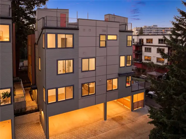 SECURE A 4.875% RATE FOR 7 YEARS!* Welcome to The Reserve II by MRN Homes—a rare, move-in-ready new construction just 1.5 blocks from Green Lake, tucked along a quiet residential street. Offering approx. 1,600 sq ft, this home lives like a single-family residence with exceptional space, privacy, and thoughtful design. COVERED EV-READY PARKING INCLUDED! Designed for modern Seattle living, the open-concept main level is light-filled and ideal for both entertaining and everyday comfort. The chef’s kitchen features Fisher & Paykel appliances, quartz countertops & locally crafted custom cabinetry. Upstairs, the tranquil primary suite offers a spa-inspired 5-piece bath w/soaking tub and walk-in closet, complemented by a generous second bedroom perfect for guests or a home office. Expansive full-size rooftop deck with gas, water & electric creates a private retreat for sunset dinners, summer gatherings, or post-lake unwinding. With a Walk Score of 84, enjoy effortless access to beloved neighborhood cafés, Green Lake Playfield, Woodland Park Zoo, UW, Roosevelt Light Rail Station and quick connections to Downtown Seattle. New construction in this setting is exceptionally rare. Conditions apply*