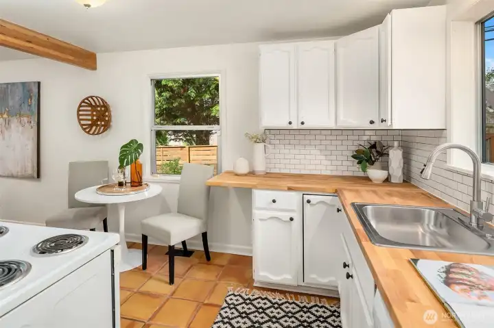 Cozy & private, this little gem of a home offers a quiet retreat at the end of a busy day. Real hardwood floors provide a classic & warm foundation though out, while large windows filter lovely natural light. Enjoy the updated full bathroom & kitchen refresh + added storage in the laundry.Come Spring & Summer, the large corner lot offers plenty of space for gardening, playing and multiple spots for entertaining including a charming patio of salvaged bricks.Set in a friendly neighborhood close to Fresh Flours Bakery & the Highland Park Corner Store the location offers you access to all the fun of White Center & Highland Park. Newer furnace, hot water heater & beautiful cedar fence. Off street parking & storage shed offers more dry storage.