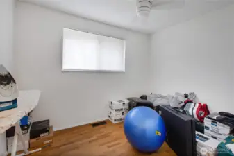 Conveniently located near Lakewood Towne Center and I-5 for easy commuting, this charming 3 bed / 1 bath rambler sits on a corner lot and offers comfortable one-level living! Enjoy newer hardwood laminate floors throughout and a cozy living room with a gas fireplace and ceiling fan. Beautifully updated full bath features a stylish sliding barn door and all bedrooms include hardwood floors + ceiling fans. The bright and spacious bonus room provides great flexibility- perfect for a home office, gym, or playroom- plus a separate utility room for added convenience. The backyard offers extra parking space and a partially fenced grassy area ready for pets, play, or entertaining. A great home in a convenient location!