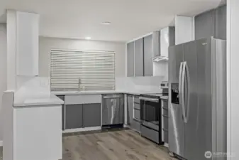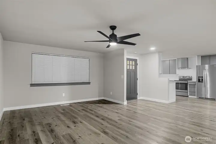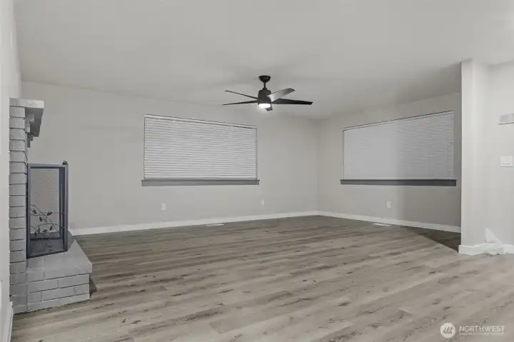 Beautifully updated single-level home on a spacious lot with an attached two-car garage! This thoughtfully remodeled residence features an open-concept layout ideal for modern living and entertaining. The inviting living room boasts a cozy fireplace and flows seamlessly into the dining area and updated kitchen. Generous bedrooms include a primary suite with private half bath—easily convertible to a ¾ bath. An oversized guest bathroom, vinyl siding for easy maintenance, and a bright, airy feel make this 1,365 sq ft home live large. Move-in ready and designed for comfort and style!