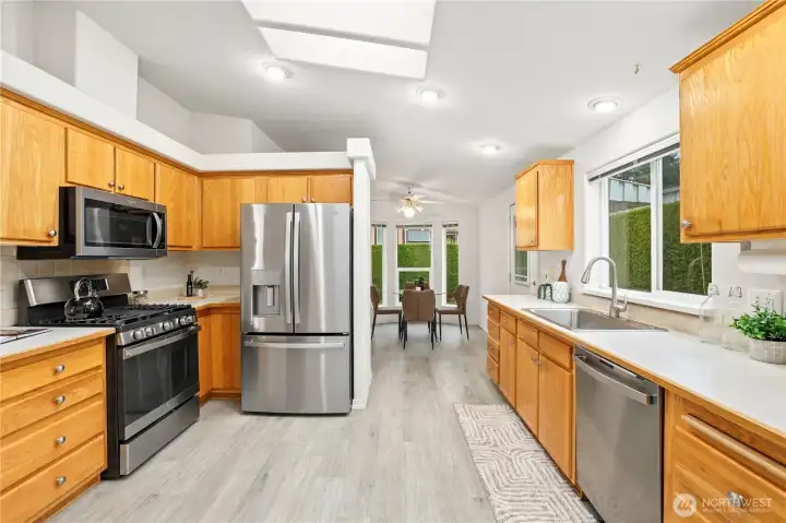 Welcome to Harvest Gate, one of Puyallup’s most desirable 55+ gated communities, where pride of ownership and a true sense of community shine. This beautifully maintained home offers all new LVP flooring, newer appliances, and a newer water heater, ensuring comfort and peace of mind. The spacious living and dining areas are perfect for gatherings, while the primary suite features a generous walk-in closet and plenty of natural light. You’ll love the oversized two-car garage with ample storage and the sprinkler system that keeps your landscaping lush year-round. Enjoy the serene walking paths, clubhouse activities, and the welcoming atmosphere that make Harvest Gate such a special place to call home.