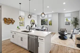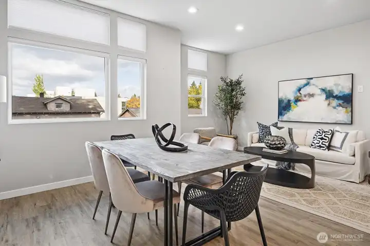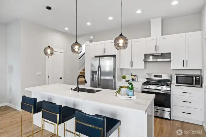 Discover modern elegance and SPACE in this Columbia City townhome. The open-concept kitchen boasts quartz countertops and stainless steel appliances—perfect for cooking or entertaining. The main level features a large living room and addt'l flex space ideal for office/studio. A lower-level suite with kitchenette and living area offers guest or rental potential. Upstairs, enjoy a luxurious primary suite with walk-in closet plus two additional bedrooms. Relax on the rooftop deck or front patio. No HOA and just minutes from shops, farmers markets, trails, Lake Washington, and transit/Light Rail—experience the best of Seattle living!