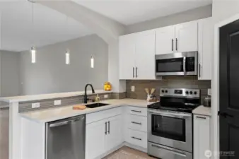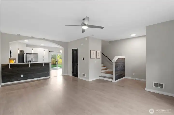 Charming Neighborhood, tree lined streets with sidewalks. Darling updated home. Kitchen features white shaker cabinets and quartz countertops, stainless appliances and modern LVP flooring. Large backyard with new fence and deck backs to open green space for added privacy. Enclosed dog run. In addition to the spacious 3 bedrooms, this home features a 12x17 bonus flex room or 4th bedroom. Always sought after large walk in closet in the primary bedroom along with it's own private bath, large enough for a king bed and then some. Tall ceilings lend to extra garage storage space. Convenient location, close to amenities. No HOA