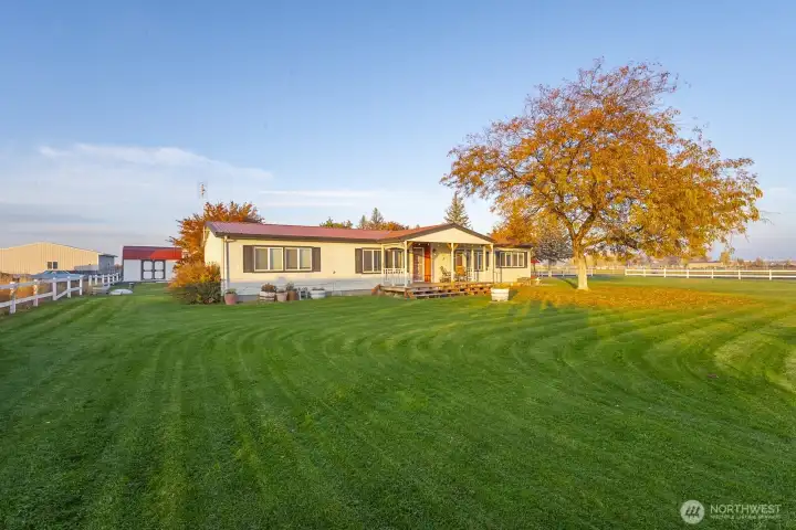 Welcome to this 1,809 sq. ft. retreat on nearly an acre, complete w/ a classic white picket fence & durable metal roof. Step inside to discover two spacious living areas, vaulted ceilings, & built-ins in the dining area. The large primary suite features an en-suite bath w/ a soaking tub, double basin sink, stand-alone shower, & a generous walk-in closet. The home boasts a recently installed HVAC & updated windows. Enjoy the huge covered trex deck right off the back sliding door to host your gatherings. Additional features include a 2-car garage, 10’ x 16’ shed w/ double trusses & 2 refrigerators that stay with the home. Close proximity to town w/ all the benefits of country living. Come & make this estate your own!
