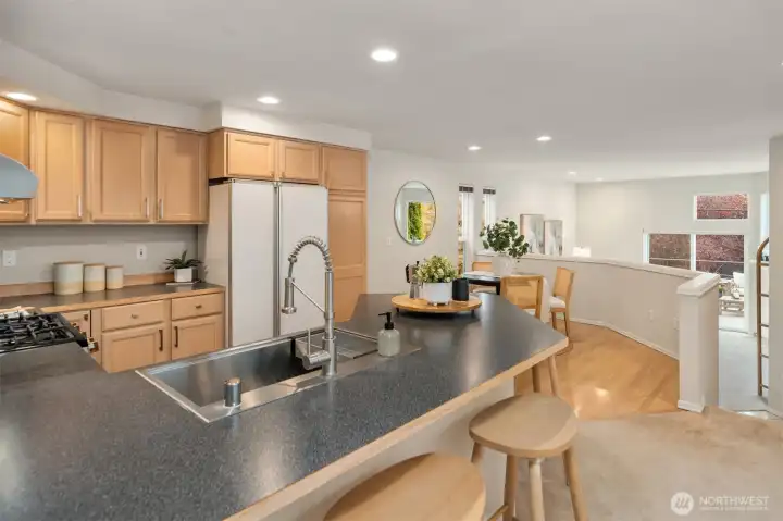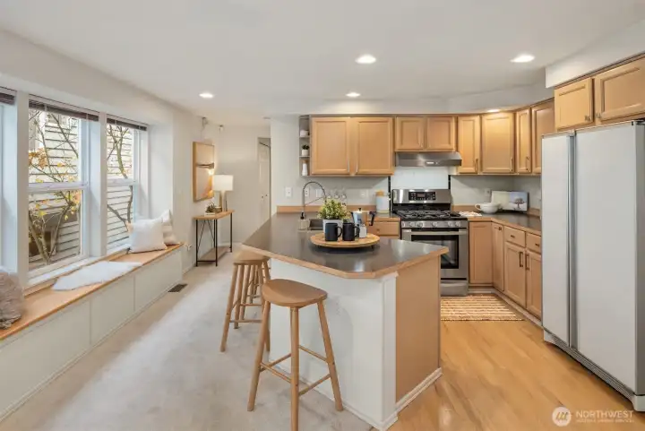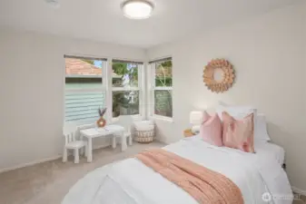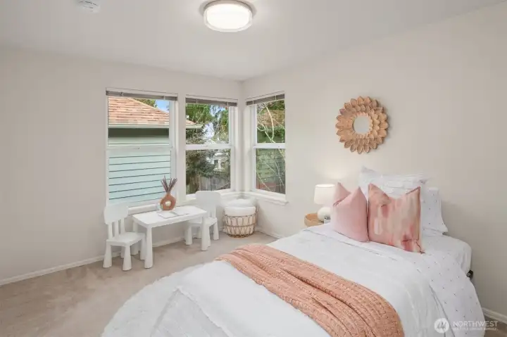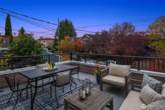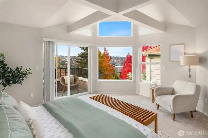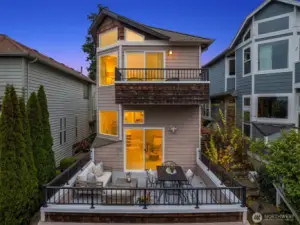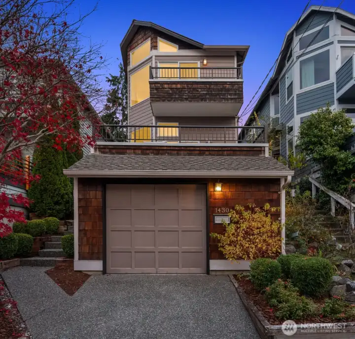 Perched above a quiet tree-lined street, this meticulously maintained home captures brilliant western light through expansive windows and soaring ceilings. An open kitchen and dining area overlook the airy living room with a cozy gas fireplace, flowing seamlessly to a spacious deck perfect for al fresco dining and soaking up glorious sunsets. A main-level bedroom complements two upstairs bedrooms, including a dreamy primary suite with 5-piece bath, envy-worthy walk-in closet and a balcony for taking in the beautiful territorial and city views. Enjoy a fully fenced, low-maintenance backyard, basement bonus-room, and a rare tandem 2-car garage - storage galore! All this within blocks of the vibrant neighborhood shops & restaurants of Madrona.