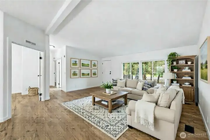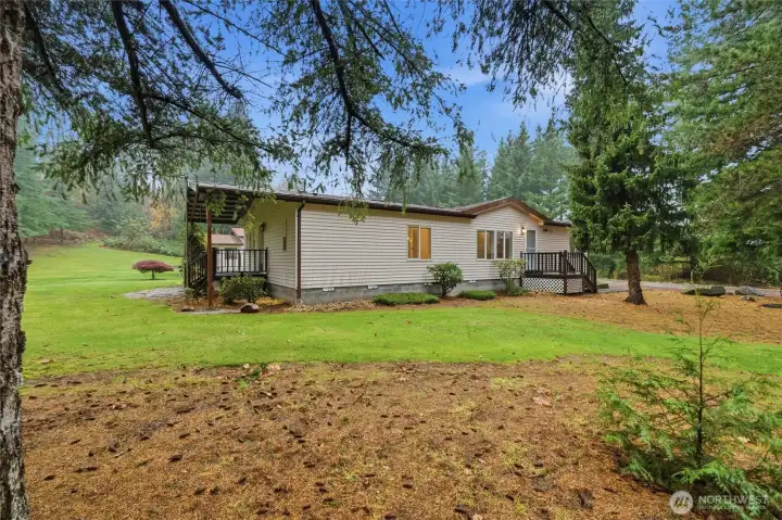 Meticulously maintained home on shy 2 acres in Everson. This beautifully updated single-story, 3-bedroom, 1.75-bath home offers open-concept living with vaulted ceilings and a spacious primary suite featuring an attached bath and walk-in closet. The den provides a perfect space for an office, bonus room, or second living area. Move-in ready with fresh interior paint, stylish fixtures, new appliances, and modern vinyl plank flooring throughout. Enjoy multiple outbuildingsāa 24x48 pole building with an attached 288 sq. ft. studio apartment and a 24x48 workshop with a large lean-to for extra covered parking. Nestled on a hillside among the trees, this private, manicured property is truly special.