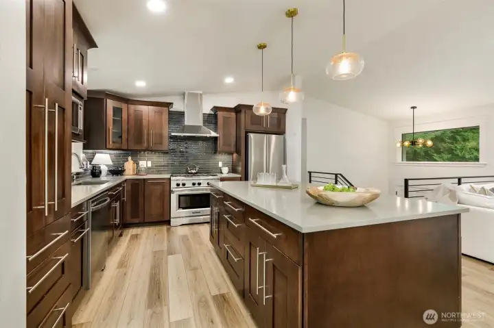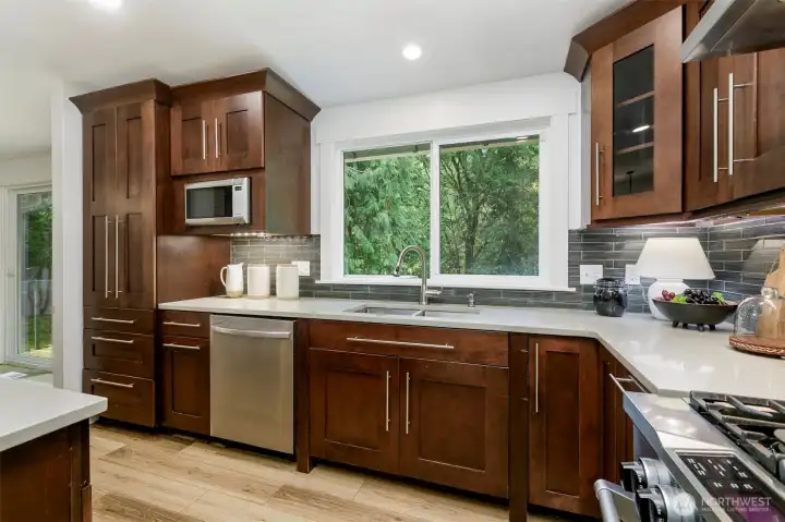 Beautifully remodeled home nestled on serene private acre! Every detail has been thoughtfully updated, The upper level offers 3 comfortable bdrms, lower level features daylight unit w/living area, bedroom & full bath, perfect for guests or multigenerational living.Relax on the newly updated deck.featuring new LVP flooring throughout, modern lighting, fresh interior/exterior paint, fully renovated baths, new roof, furnace, water heater & new garage doors.The stunning gourmet kitchen is designed for everyday living & entertaining.Level yard w/mature trees w/space to park RV/boat.Short drive to acclaimed Woodinville Wine Country, top-rated restaurants, boutiques,& tasting rooms. Close to beautiful Cottage Lake Park. Northshore School District.