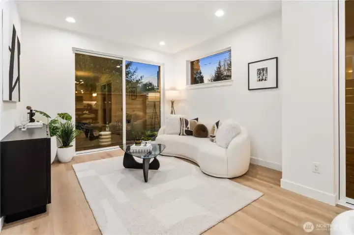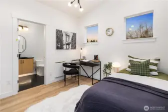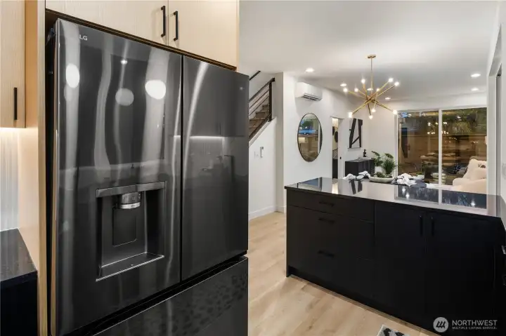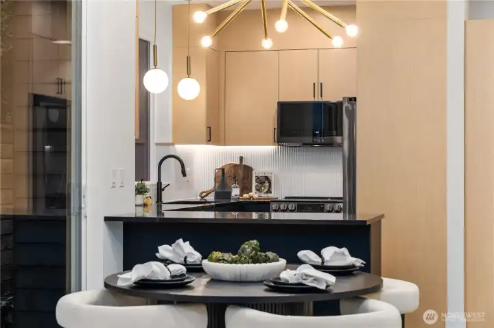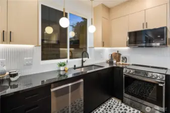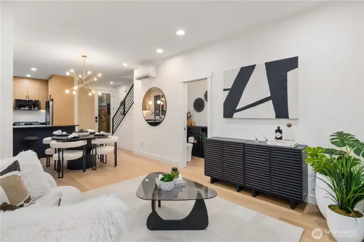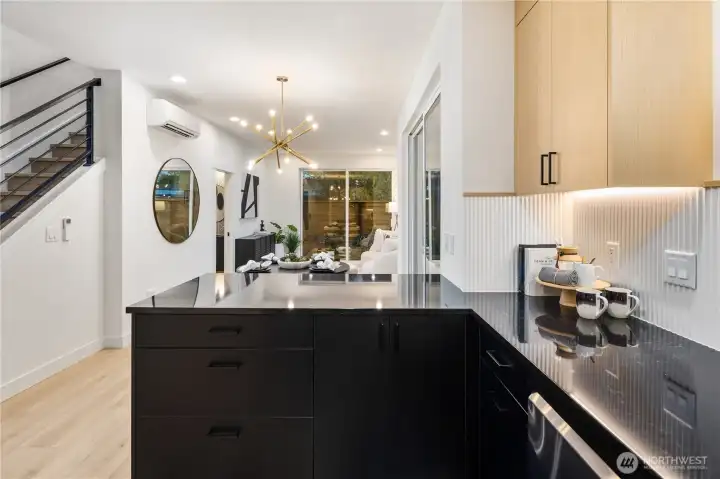 Brand new and stylish, this modern West Seattle home offers thoughtful design & an incredible location. The main level is bright and open, featuring dual sliding doors that fill the space with natural light & open to private patio areas. The kitchen includes black stainless appliances and quartz countertops, while custom built-ins throughout the home provide added function and storage. Upstairs, vaulted ceilings enhance both bedrooms, each with an en-suite bath and heated tile floors. A convenient lower-level half bath, included washer/dryer, and off-street parking with EV charging complete this impressive home. Enjoy being close to Schmitz Park, Alki Beach, and the shops, cafes, and restaurants of the vibrant Admiral District.