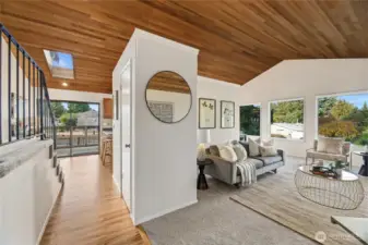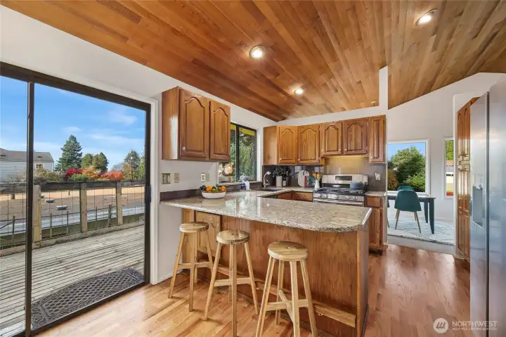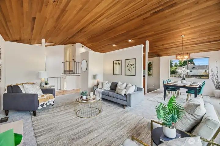 Located in desirable Gatewood, this Northwest Contemporary showcases dramatic cedar-finished vaulted ceilings that energize the main living spaces with warm texture & modern character. Built in 1983, the home blends timeless design with modern plumbing and wiring for comfort and peace of mind. With 2,050 sq ft of living space, this home offers four bedrooms—including a private primary suite with a ¾ bath—and three bathrooms total. Fresh paint and new carpet make it move-in ready. The lower-level family room features a wet bar & direct access to the backyard, creating the perfect gathering space. A spacious 600 sq ft two-car attached garage and 5,100 sq ft lot complete this gem, just a short walk to Gatewood Elementary & the Morgan Junction.
