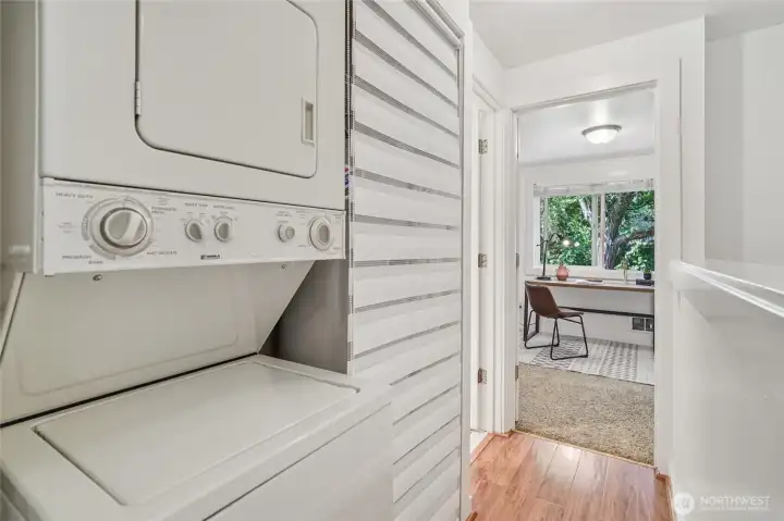 Discover this inviting end-unit, townhome-style condo in the heart of Queen Anne. Tucked along a quiet, tree-lined street just moments from neighborhood cafés, shops, and beautiful Rodgers park, this thoughtfully cared-for 2BR/1BA home offers a warm and welcoming layout. The updated kitchen features stainless appliances, granite counters, and hardwood floors that flow into the light-filled living area, complete with a cozy fireplace and easy access to a generous private deck. Upstairs, two well-proportioned bedrooms share a bright full bath. Enjoy the convenience of in-unit laundry, dedicated parking, and excellent transit options nearby—an ideal blend of comfort, accessibility, and classic Queen Anne charm.