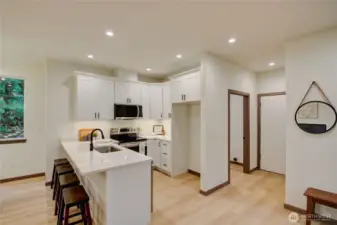 Brand new home located on a level property with direct access to the Lookout Mountain Trail System. The trail head is located at the end of the dead-end street. Enjoy deluxe mountain biking in the Bellingham area from your back yard! This 3 bedroom, 2.25 bath home has easy access from the street to the attached 2-car garage. The open kitchen located on the main level has white cabinet package, stainless appliances, eating bar, & quartz counter tops. Level patio access directly off the great room area to the back yard. Flooring includes luxury vinyl plank, ceramic tile, and carpeting. Energy efficient mini-split ductless heating / cooling plus wall heaters in small spaces. Come experience a brand-new home! Loads of 'elbow room here!