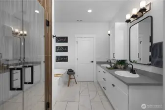 Experience elevated living in this beautifully designed 3-bedroom, 2-bath home featuring high-end finishes throughout. The open-concept floor plan showcases a modern kitchen with stainless steel appliances, quartz countertops, and custom cabinets. The primary suite offers a spacious walk-in closet and a luxurious five-piece bath with dual vanities and a soaking tub. Thoughtfully crafted for comfort and style, this home combines modern elegance and everyday functionality in every detail.
