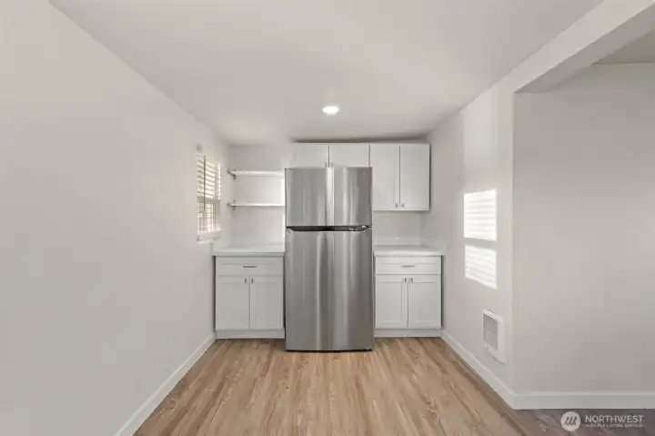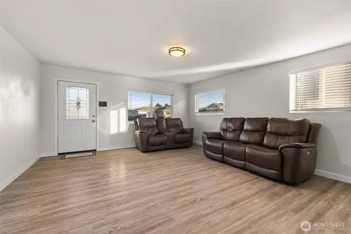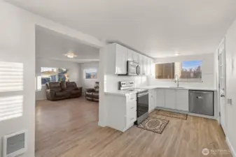 Don't miss this beautifully updated, move-in-ready rambler situated on a spacious lot with mountain views in Orting! Recent updates include fresh paint inside and out, new laminate flooring, updated kitchen cabinets, quartz countertops throughout, a stylish backsplash, and a remodeled bathroom. Additional improvements feature new windows, a sliding glass door, new recessed lighting, and updated appliances. The large Tuff shed, just two years old and with garage access, provides extra storage for all your toys, along with gated RV storage. This charming home feels expansive with three generously sized bedrooms, an eat-in kitchen, and nearly 1/3 acre of land. You’ll love enjoying the vast yard on warm summer days.