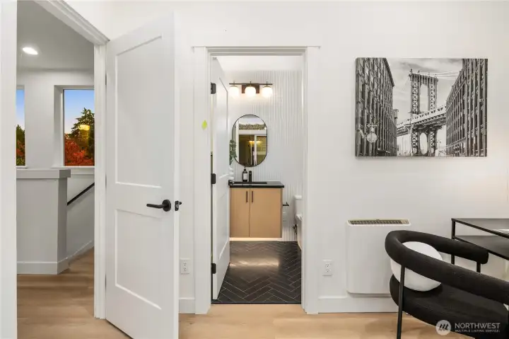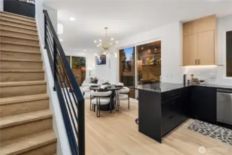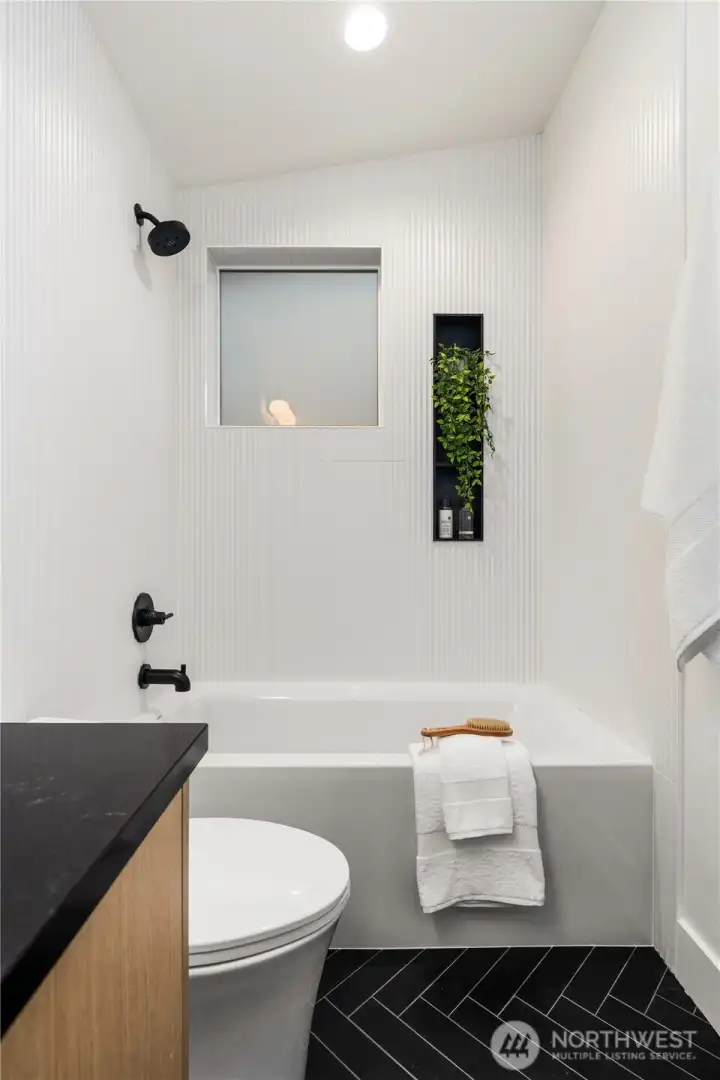 Brand new and stylish, this modern West Seattle home offers thoughtful design & an incredible location. The main level is bright and open, featuring dual sliding doors that fill the space with natural light & open to private patio areas. The kitchen includes black stainless appliances and quartz countertops, while custom built-ins throughout the home provide added function and storage. Upstairs, vaulted ceilings enhance both bedrooms, each with an en-suite bath and heated tile floors. A convenient lower-level half bath, included washer/dryer, and off-street parking with EV charging complete this impressive home. Enjoy being close to Schmitz Park, Alki Beach, and the shops, cafes, and restaurants of the vibrant Admiral District.