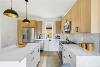 Thoughtfully crafted stand alone home by Upper Left Living, a trusted West Seattle builder known for quality and detail. Enjoy real wood floors and modern finishes that create a warm, welcoming vibe. Well-separated bedrooms offer comfort and privacy, and the luxe primary suite features a custom-tiled shower with glass door. The spacious kitchen boasts locally made Belmont cabinets, quartz counters, prep island with seating, induction range, stainless appliances, and under-cabinet lighting. Efficient heating and AC, a fully fenced yard, EV-ready parking, and a prime West Seattle location near parks, trails, Westwood Village shops & dining, Myrtle Reservoir Park, Lincoln Park, 35th Ave SW, the bridge, downtown, and transit.