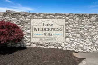 Welcome to sought-after Wilderness Villa, a vibrant 55+ community! This beautifully maintained 3-bed, 2-bath home offers comfort, style, and convenience just steps from the clubhouse and amenities. The spacious living area features vaulted ceilings, skylights, opens to private backyard. The bright kitchen boasts natural light, eating bar, abundant cabinetry, w/ plenty of counter space. Primary suite includes a walk-in large shower, two sinks w/X-Large walk-in closet. Additional highlights include a full laundry room, two-car garage, A/C & Blinds throughout. Enjoy relaxing or entertaining in the private, low-maintenance backyard patio surrounded by easy-care landscaping. Prime location near shopping, dining, and medical services. Great home!